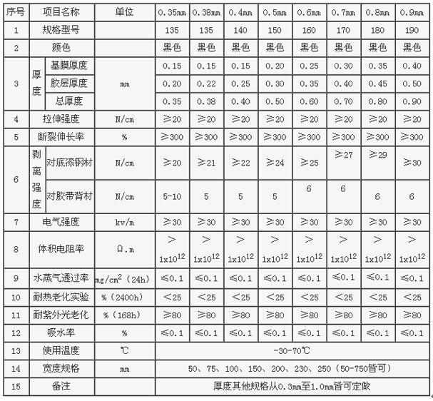 聚乙烯防腐膠粘帶內(nèi)帶典型參數(shù)